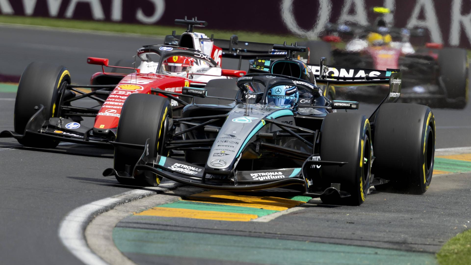 George Russell takes a comfortable victory in the Australian Grand Prix at the start of a new F1 era after an early scrap with Charles Leclerc.